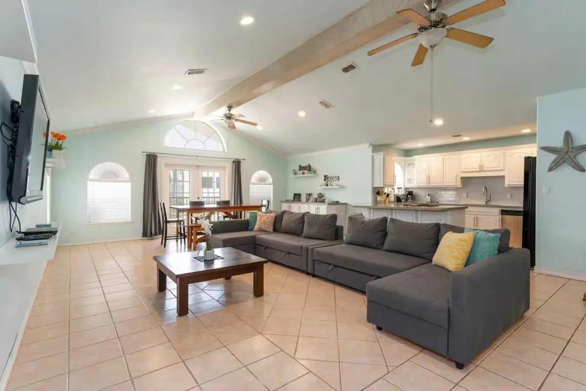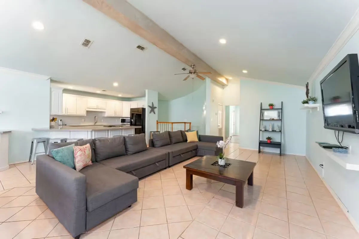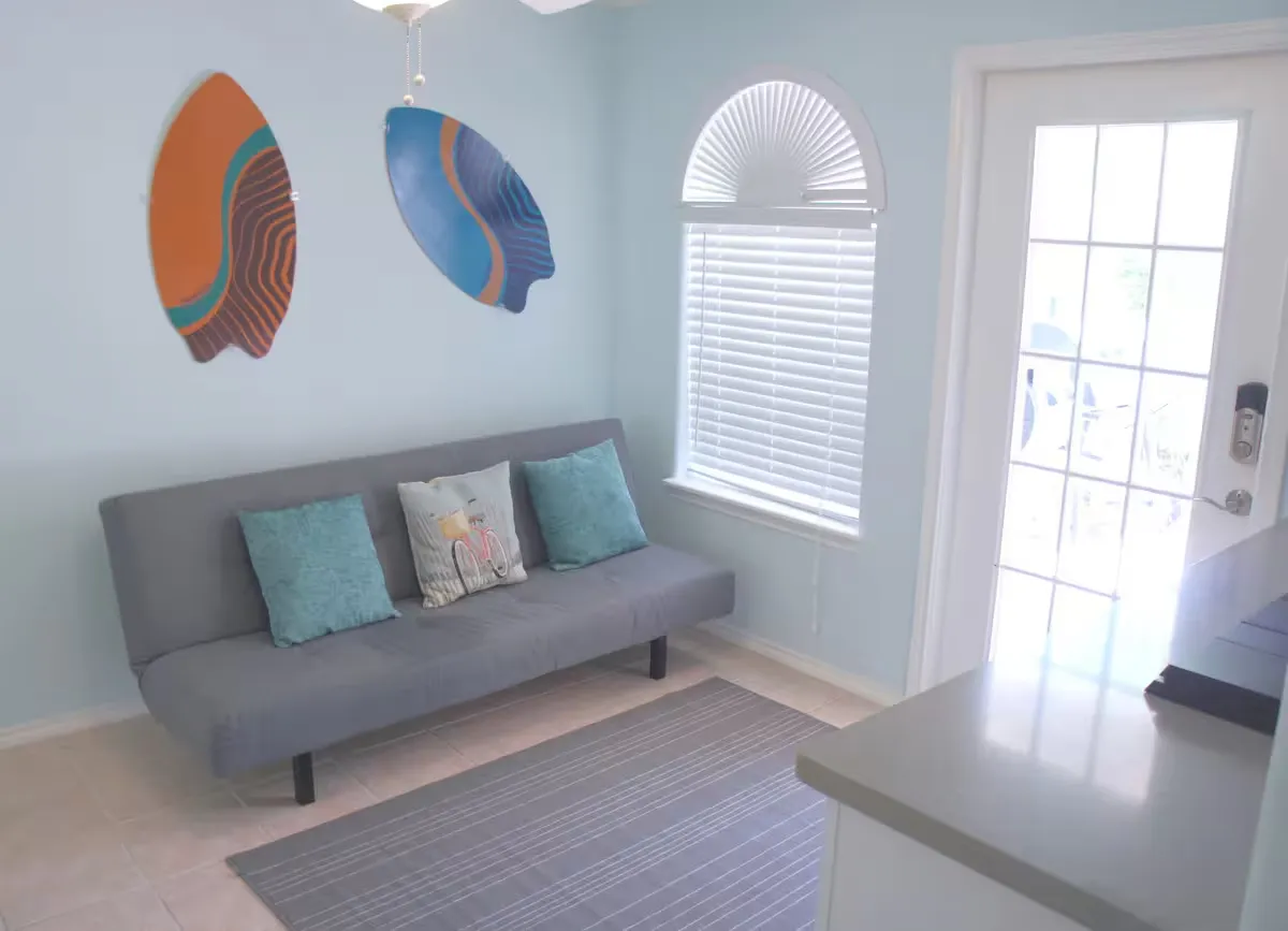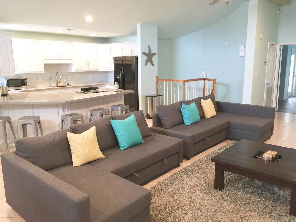 South Padre Island Rental lic2023-1260. Game Room sofa: Converts to a twin bed. It converts by pulling the back forward until it clicks