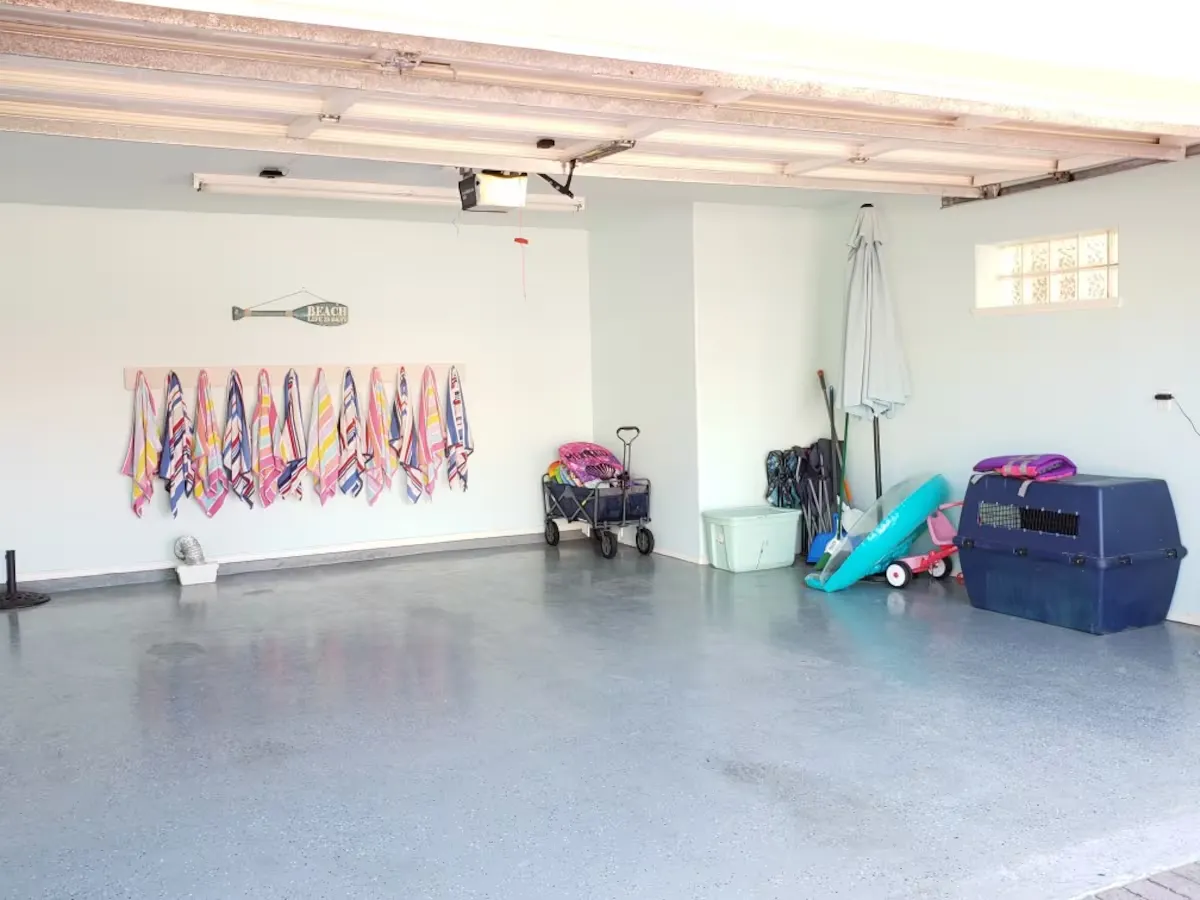 13. Rinsing of from beach: Use the shower outside in the backyard which turns on by pulling the