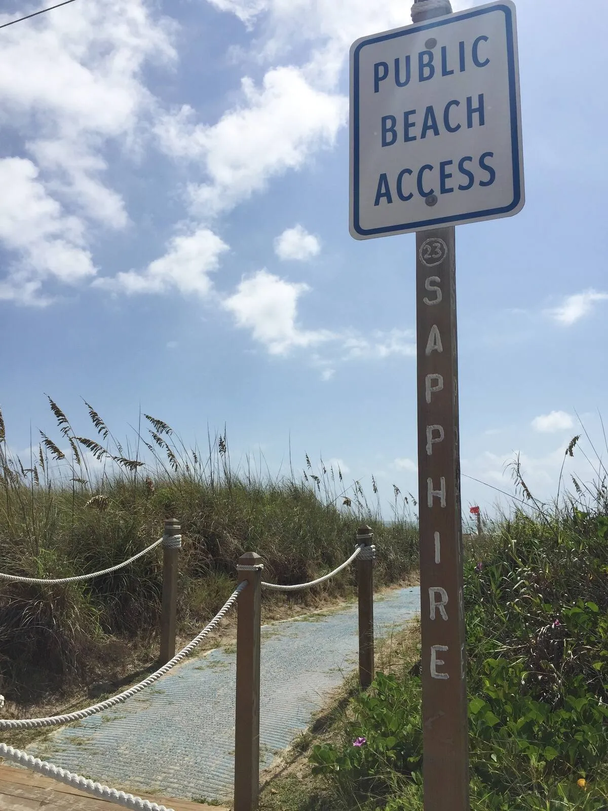 “Sapphire beach access is a short 5-6 min walk down the street and to the left of Gulf blvd.”