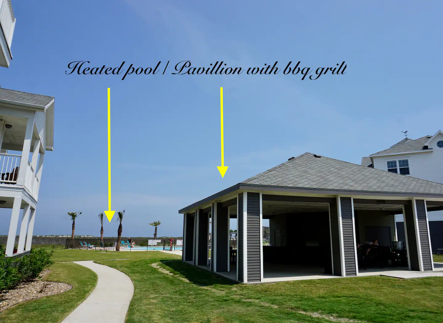 Guests can access the heated pool, pavilion, grills, bathhouse, private pathway to the beach. The beach access is also unique as it is a sectioned off area that does not allow vehicles on that part of the beach. Thus, fewer beach safety concerns!